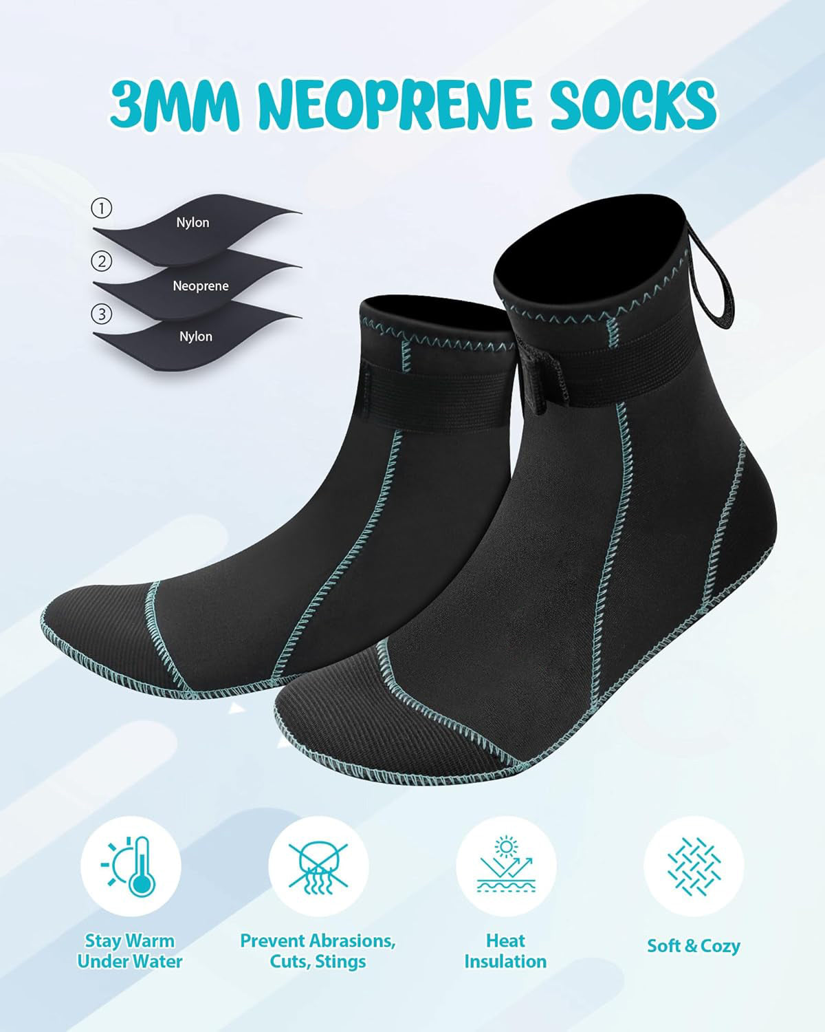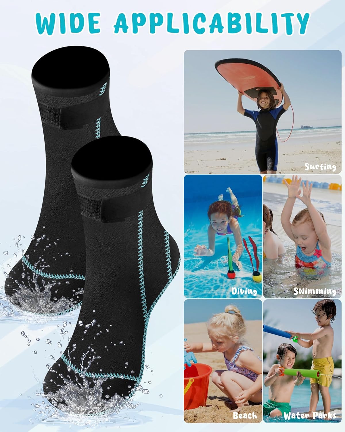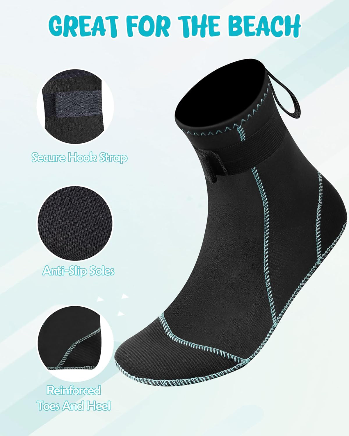 These neoprene diving socks are designed for outdoor beach activities including soccer, volleyball, snorkeling, and scuba diving. They provide excellent protection and comfort by shielding your feet from rough surfaces, cold water, and potential underwater hazards. The durable material ensures long-lasting wear while allowing flexibility and grip, making them ideal for both water sports and beach sports where foot protection is essential.